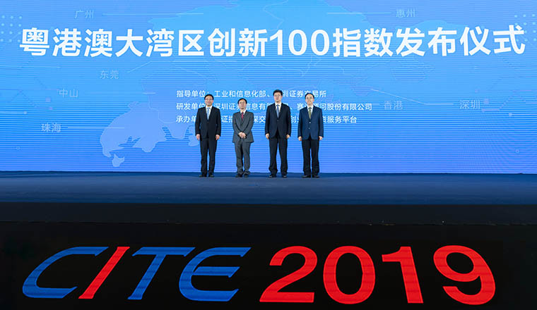 為落實《粵港澳大灣區發展規劃綱要》要求,發揮資本市場服務實體經濟作用,助力大灣區高質量發展,2019年4月9日,深交所全資子公司深圳證券信息有限公司聯合工信部下屬單位賽迪研究院在第七屆中國電子信息博覽會開幕式上,發布粵港澳大灣區創新100指數(簡稱:灣創100,代碼:980001),標志著粵港澳大灣區系列指數正式發布。工信部副部長王志軍、廣東省副省長覃偉中、深圳市市長陳如桂、深交所理事長吳利軍共同見證灣創100發布。
